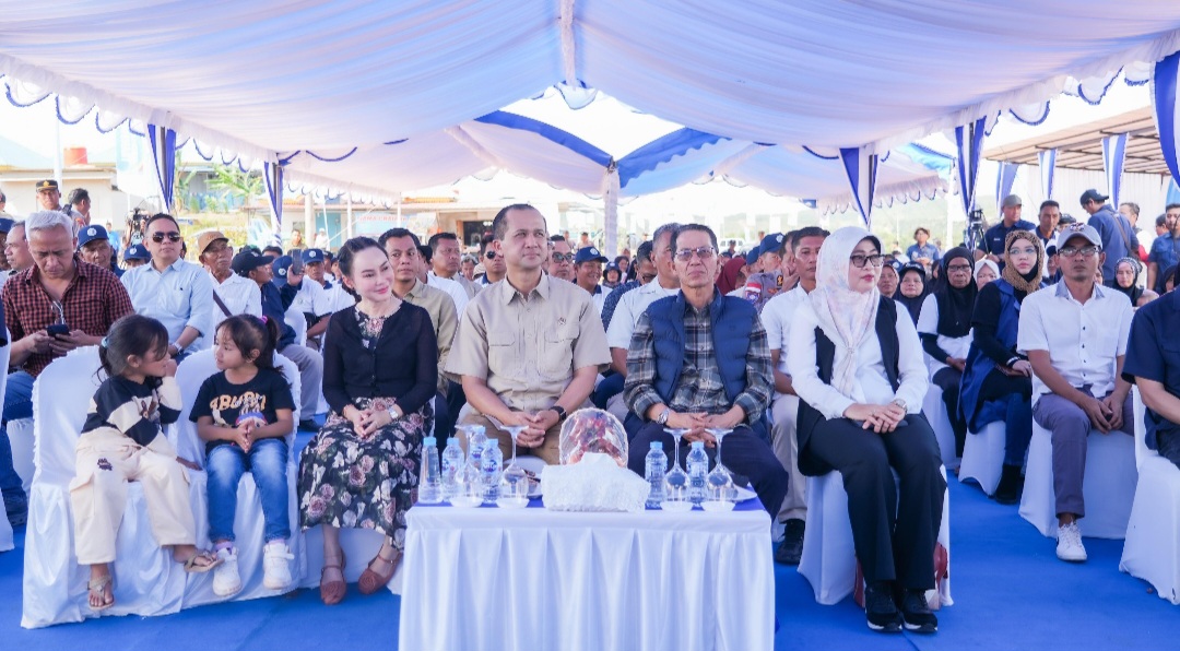 Batam, Insightkepri.com – Kepala BP Batam, Amsakar Achmad dan Wakil Kepala BP Batam, Li Claudia Chandra menghadiri penyerahan bantuan perbekalan dan santunan nilai rumah asal kepada masyarakat transmigrasi lokal, di Tanjung Banun, Minggu (21/12/2025).